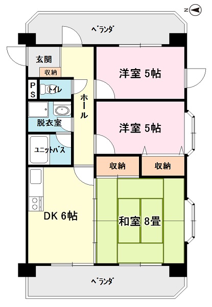 | 間取 | 3DK (3DK(和8,洋5,洋5,DK)) |